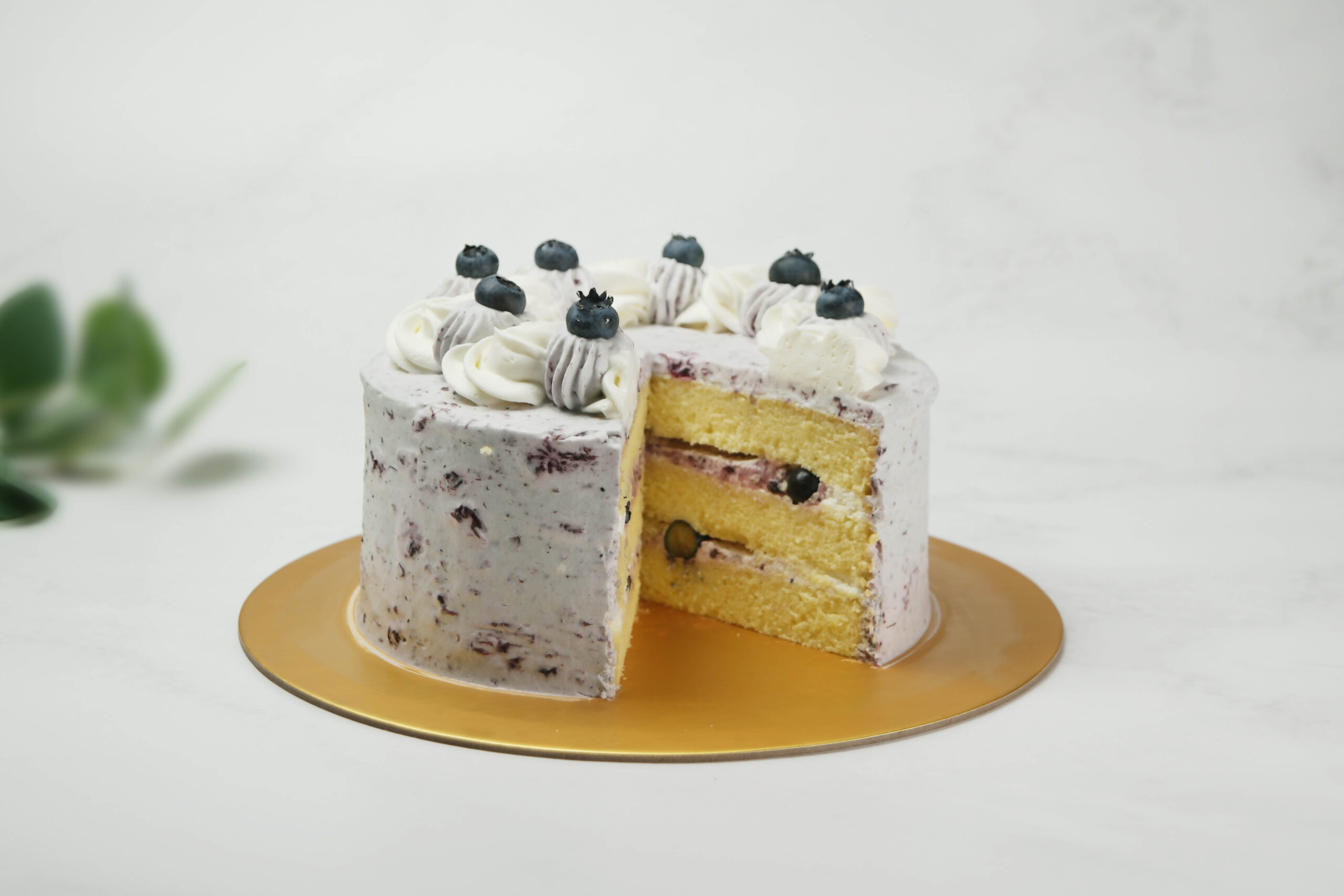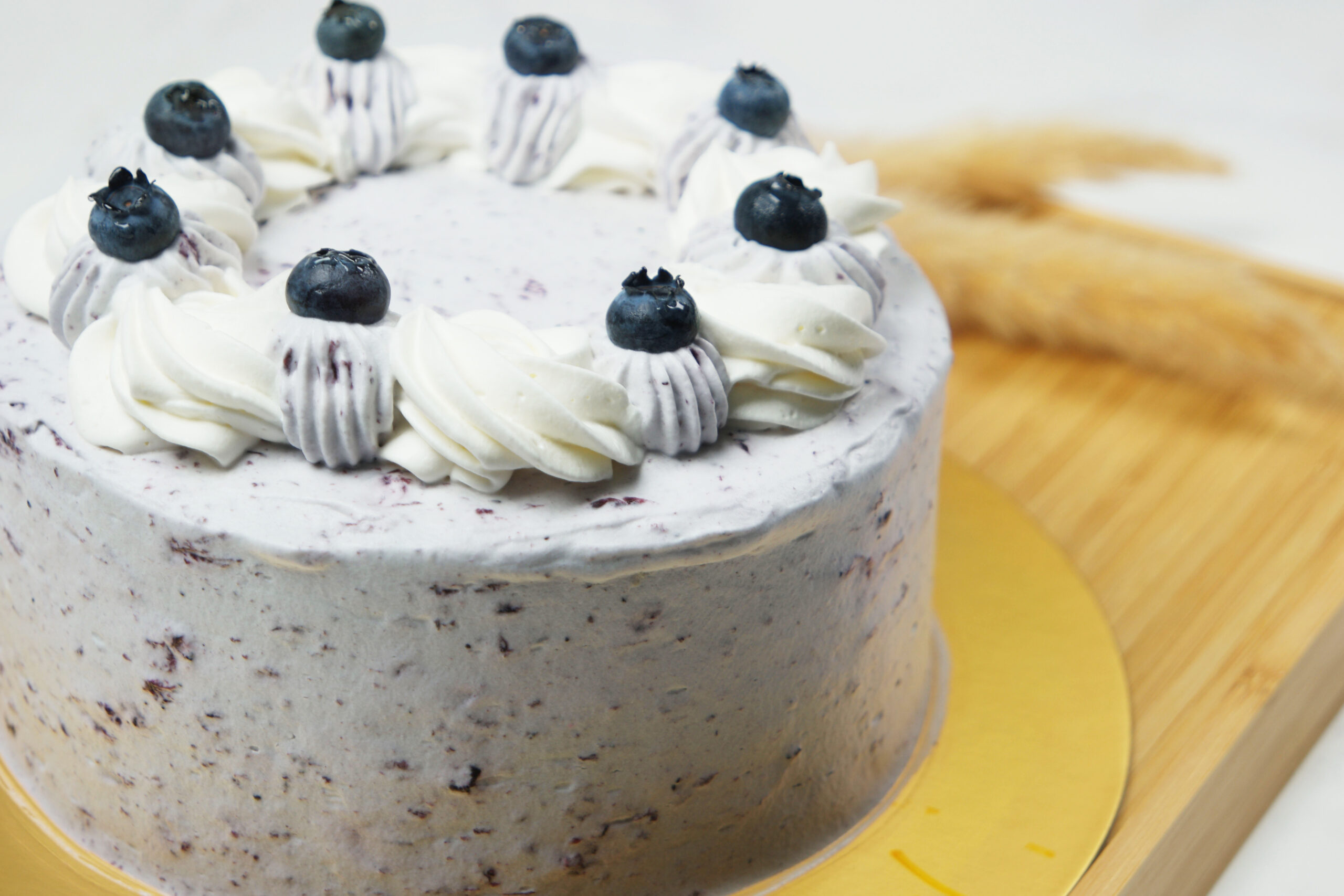 Itโ€™s not only packed with blueberries on the outside but it is also filled with blueberry compote inside.ย  So you kinda get the marriage of both flavours with the concentrated blueberry flavour inside the cake and then the brightness of the fresh blueberries outside the cake.